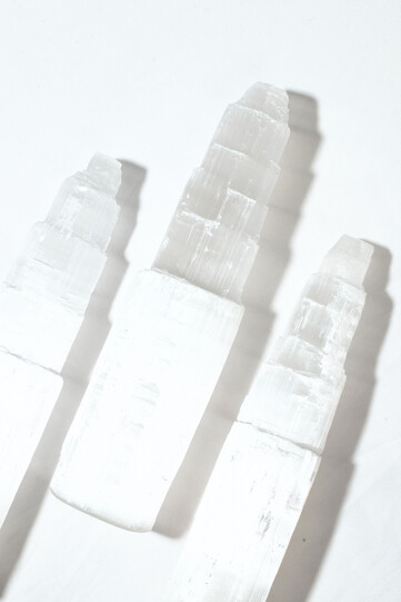Place Selenite amongst your crystals to cleanse their energies, or you can put other crystals in a Selenite plate or bowl. Alternatively, you can place your crystal bracelets and necklaces over/around a Selenite tower so it can cleanse them in preparation for a new day.
