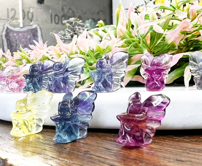 Magic: Carved crystal fairies embody the mystical and whimsical aspects of life, encouraging us to embrace wonder and imagination. They bring pure magic and whimsy to whoever is lucky enough to catch one, and wherever you may have them in the home!