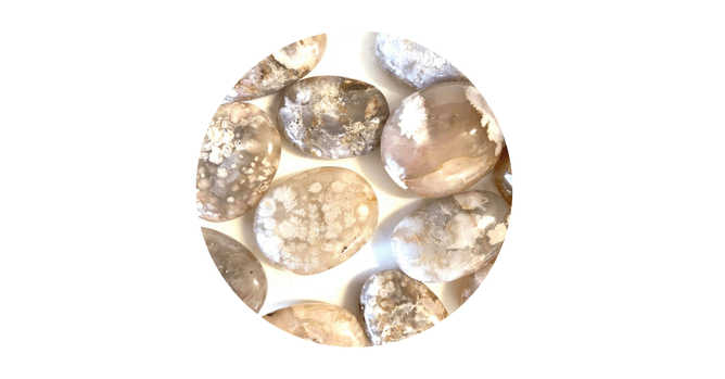 SAKURA AGATE: Also known as Flower Agate, Sakura Agate is literally Spring in crystal form! The stunning patterns through this crystal look like blooming cherry blossoms, and this crystal encourages you to bloom too! In fact, if you pop this one under a microscope you can see the sparkling geode energy within them. Pure magic! Sakura Agate is a powerful stone of transformation and will help you to grow into the best version of yourself. We love our little stars and moons which can be carried around easily with you in your bra, pocket, or purse so that you always feel joyful and supported.
