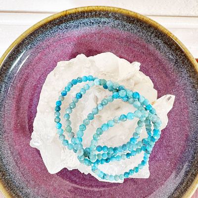These beautiful Blue Apatite bracelets hold so much magic! Blue Apatite is a dual-action stone, known for its positive use of personal power to achieve goals. It clears away confusion, apathy or negativity, then, stimulates the intellect to expand knowledge and truth, which may be used for personal growth or for the collective good. It is a Stone of Manifestation, promoting a humanitarian outlook & service to others.