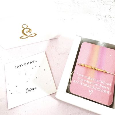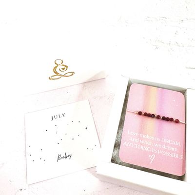 Celebrate your unique energy with our petite, adjustable Birthstone Bracelets, each one beautifully boxed and accompanied by an affirmation or information card about your birthstone.