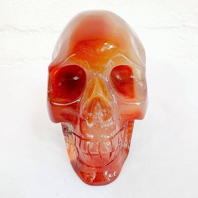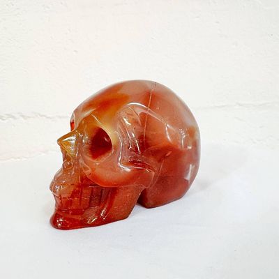 This Sardonyx Skull carries the deep ember-tones of molten earth, rich reds, burnt orange and bands of creamy stone that feel like ancient memory and flame woven into form. Skulls are keepers of wisdom, portals of consciousness and allies for those walking the path of awareness and transformation. When carved from Sardonyx, their message amplifies into the realms of strength, courage, and aligned personal power.