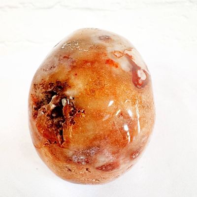 With warm burnt-amber tones, creamy veining and exposed cluster pockets that shimmer like inner light breaking through old stone, Toothless is the embodiment of resilience. She carries the vibration of courage, truth-speaking and sacred self-acceptance, not the polished kind, but the real, lived-in, beautifully human kind.