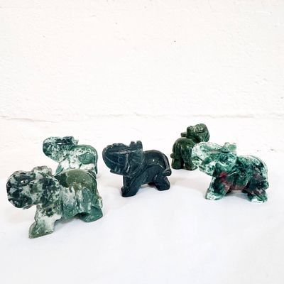 Moss Agate is known for its calming, stabilising energy, helping to ground your emotions, support new beginnings, and encourage steady growth. Paired with the elephant, a symbol of good luck, protection, loyalty, and quiet strength, these carvings make powerful allies for anyone seeking balance, perseverance, and emotional clarity.