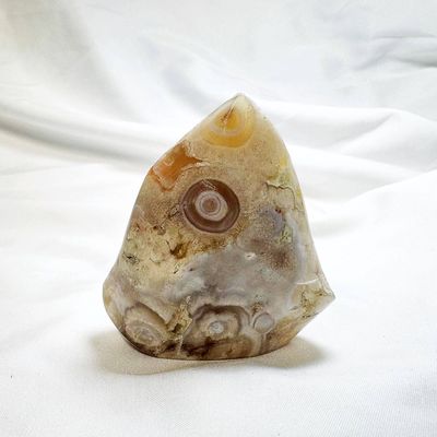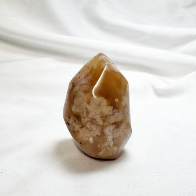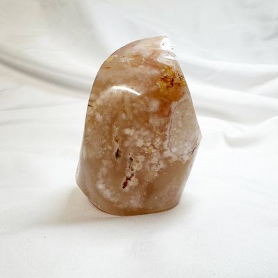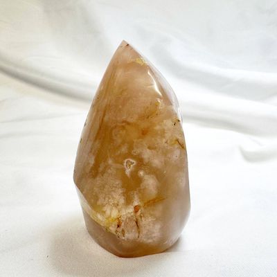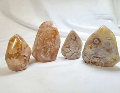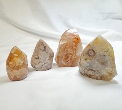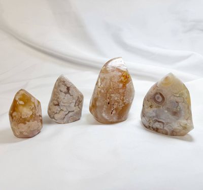 These Sakura Agate flames carry a story that makes them even more meaningful. We were fortunate to source a beautiful slab of Sakura Agate at an incredibly special price ....... one of those rare, aligned moments where everything simply fell into place. Rather than leaving it as a single piece, we chose to have it lovingly carved into flames, allowing more people to experience the beauty and gentle power held within this extraordinary stone. Because of that original opportunity, the pricing of these flames reflects that gift ..... a one-time offering of something truly special at a price that may not come again.