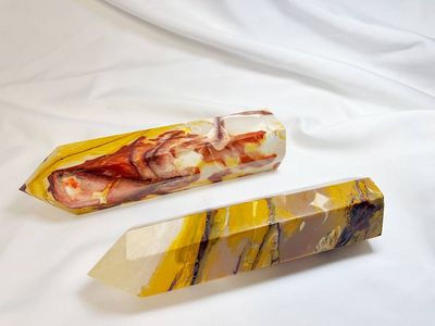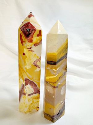 Bold, grounding, and deeply connected to the ancient rhythms of the Earth, these Large Mookaite Towers carry a powerful presence the moment you see them. With their rich bands of golden yellow, warm ochre, and deep earthy reds, each piece feels like a landscape captured in stone — a reminder of strength, resilience, and the wisdom that comes from standing firmly in your own truth.
